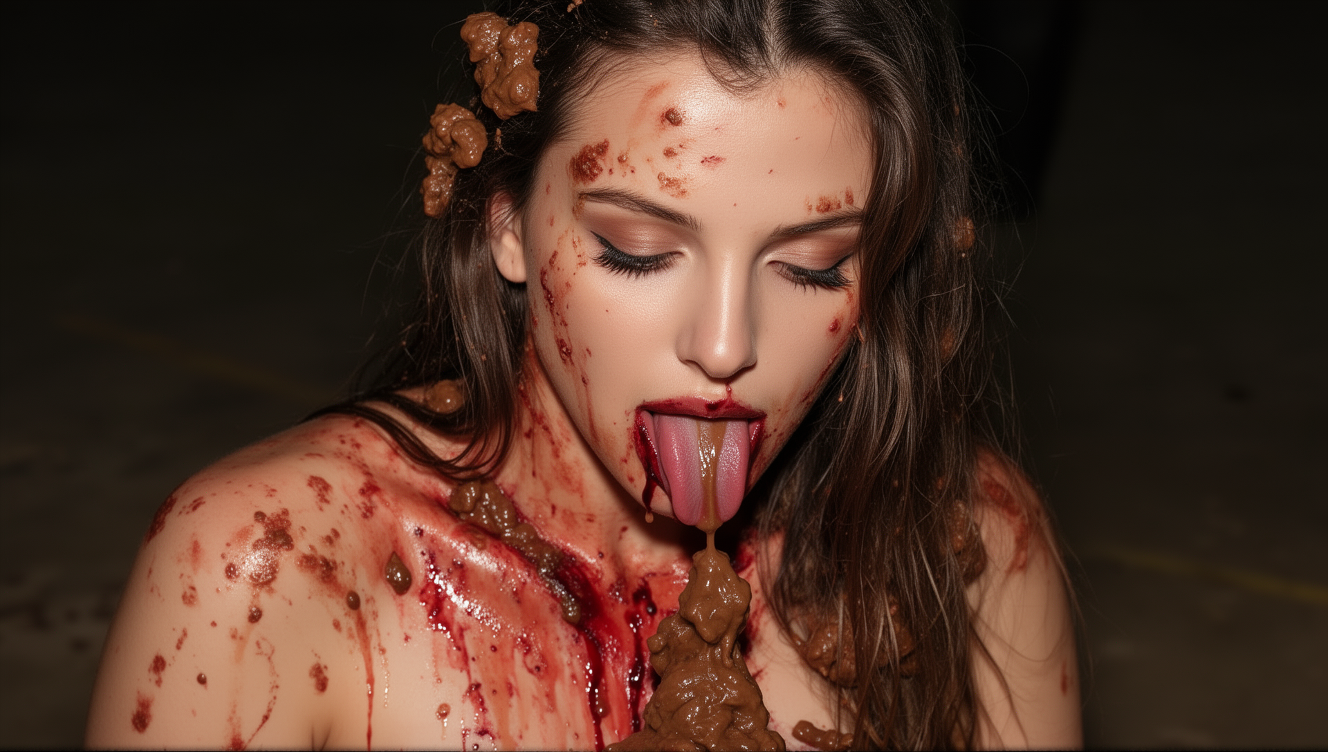 Veronica eating food from her own ass, vomiting it out and eating it again. She must be into recycling?